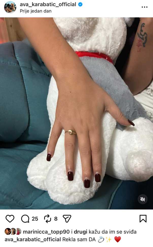 Veza je prethodno izazvala zanimanje javnosti nakon što su se pojavile sumnje u identitet njezina partnera, no Ava je odlučila stati na kraj glasinama i jasno poručiti da je riječ o stvarnoj osobi s kojom je u ozbiljnoj vezi. Objavom zaruka dodatno je potvrdila da odnos s Ivanom Lazarom vidi kao trajnu i stabilnu životnu odluku.