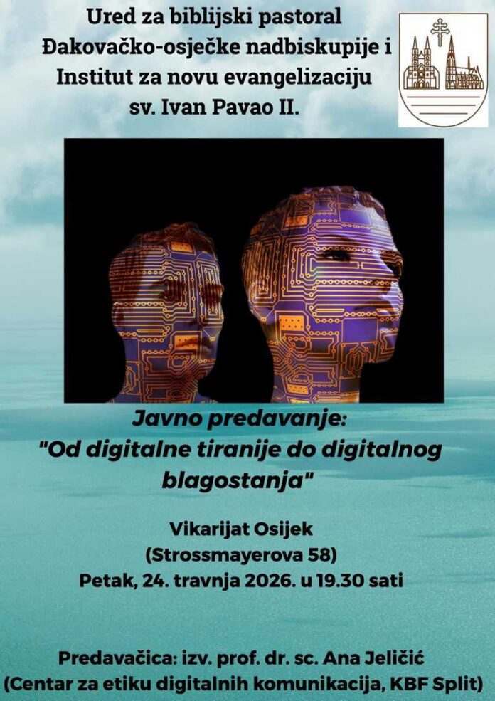 U petak, 24. travnja u 19.30 sati u Vikarijatu Osijek održat će se javno predavanje pod nazivom “Od digitalne tiranije do digitalnog blagostanja”.