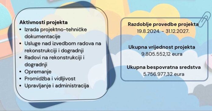 Razdoblje provedbe projekta predviđeno je od 19. kolovoza 2024. do 31. prosinca 2027. godine. Ukupna vrijednost projekta iznosi 9.805.552,12 eura, od čega se 5.756.977,32 eura planira osigurati iz bespovratnih sredstava.