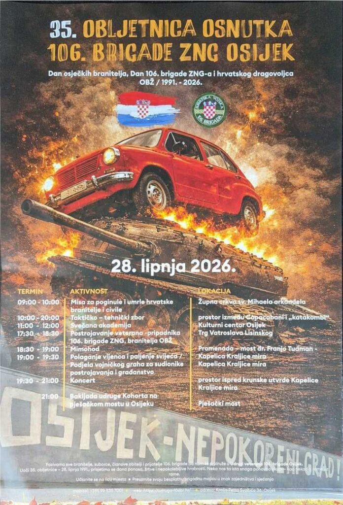 U nedjelju 28. lipnja obilježava se 35. obljetnica osnutka 106. brigade Zbora narodne garde Osijek, jedne od ključnih postrojbi u obrani grada i istočne Hrvatske 1991. godine.