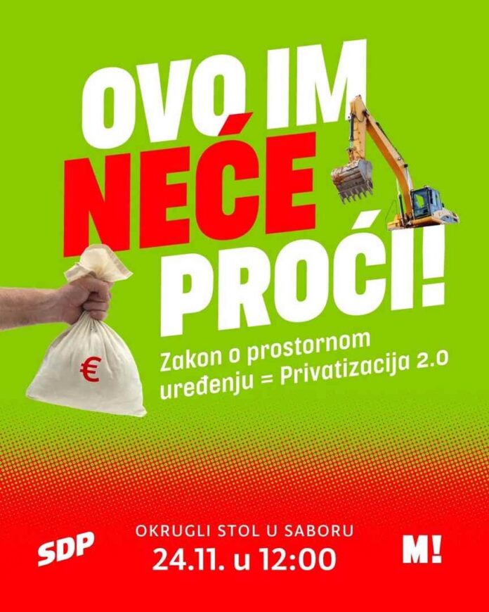 Događaj će se održati u ponedjeljak 24. studenog u podne, u suradnji s partnerima iz SDP-a. Cilj okruglog stola je rasprava o predloženim zakonskim izmjenama, za koje Možemo! smatra da bi mogle imati značajan utjecaj na upravljanje prostorom i razvoj hrvatskih gradova.