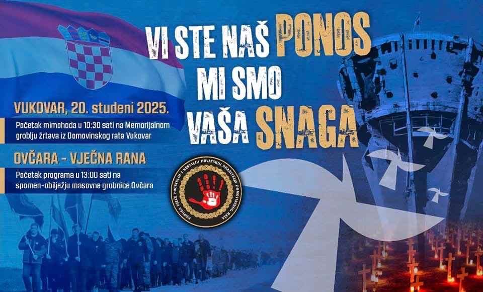 Zato vas djeca poginulih i nestalih hrvatskih branitelja pozivaju da zajedno koračamo u mimohodu „Vi ste naš ponos – mi smo Vaša snaga” te da sudjelujemo u komemorativnom programu „Ovčara – vječna rana”, kojim odajemo počast svim nevinim žrtvama i braniteljima koji su položili svoje živote za slobodnu Hrvatsku.