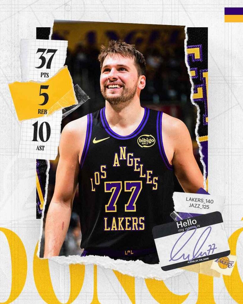 Los Angeles – Luka Dončić ponovno je pokazao zašto je jedan od najdominantnijih igrača u NBA ligi. U večerašnjoj utakmici Lakersa protiv Utah Jazza, slovenski košarkaš postigao je 37 poena i podijelio 10 asistencija, čime je vodio svoju momčad do uvjerljive pobjede 140-126.