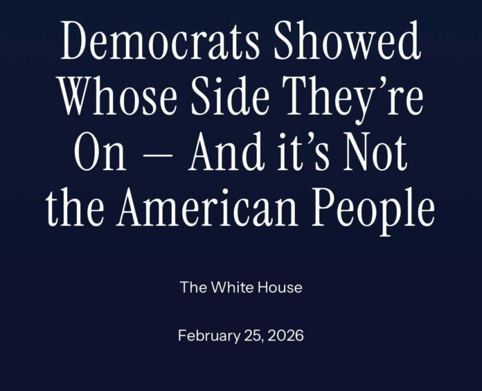Bijela kuća objavila je 25. veljače 2026. oštro intonirano priopćenje nakon govora predsjednika Donalda J. Trumpa o stanju nacije, poručivši kako su demokrati u Kongresu “pokazali čiju stranu drže i to nije američki narod”.