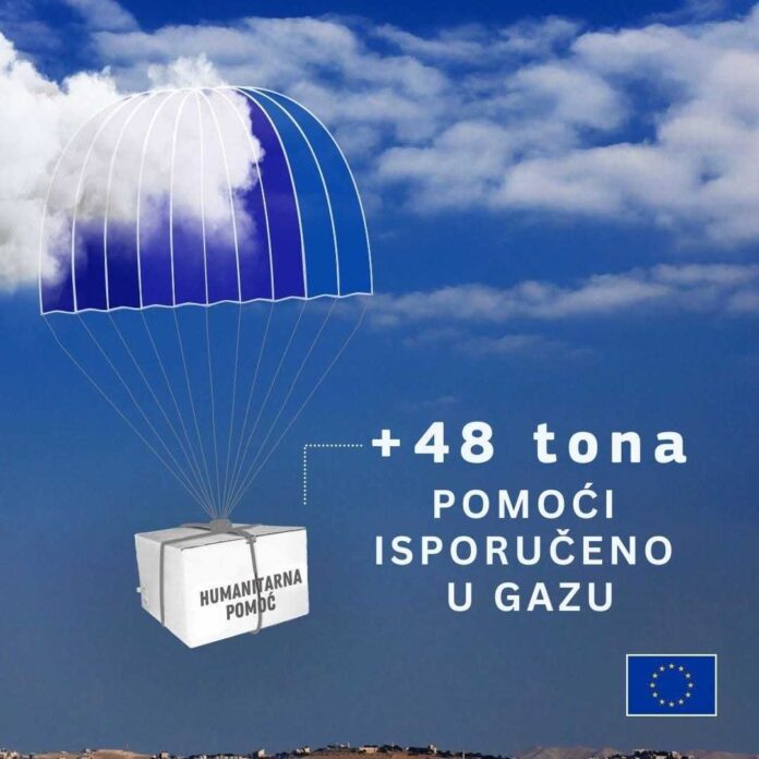 Europska unija nastavila je s humanitarnim zračnim mostom prema Gazi, a ovoga je tjedna isporučeno dodatnih 48 tona pomoći namijenjene civilnom stanovništvu pogođenom teškom humanitarnom situacijom.