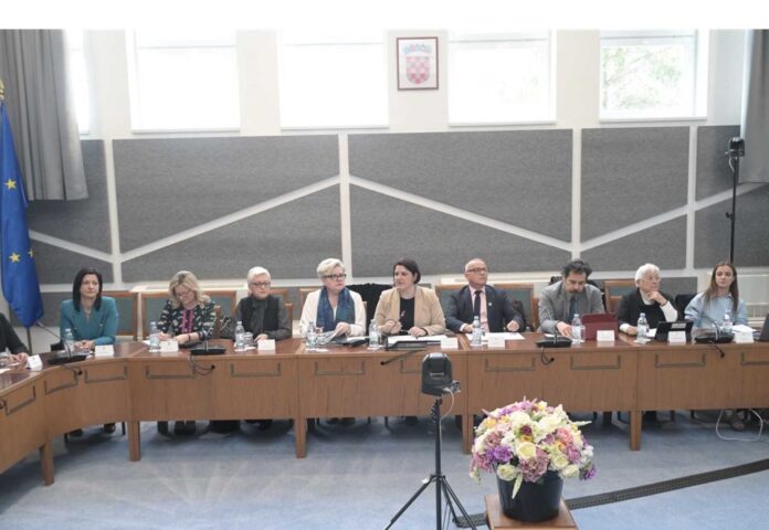 Državna tajnica Ministarstva rada, mirovinskog sustava, obitelji i socijalne politike Margareta Mađerić istaknula je da Vlada pokušava rasteretiti žene širenjem usluga skrbi u zajednici te izmjenama Zakona o radu koje omogućuju fleksibilnije radno vrijeme roditeljima djece mlađe od osam godina i lakši pristup radu na daljinu.