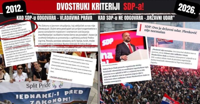 U objavi su podsjetili na 2012. godinu, kada je Vlada predvođena SDP-om odlučila da se u Splitu održi povorka Gay Pridea unatoč protivljenju lokalnih vlasti. Tada su navodi HDZ, državni dužnosnici isticali da država ima ustavne ovlasti nad pitanjima javnog okupljanja i sigurnosti te da je riječ o provođenju zakona, a ne o zadiranju u nadležnosti grada.