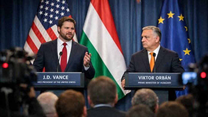 Na konferenciji s premijerom Viktor Orbánom, Vance je pohvalio njegovo vodstvo, nazvavši ga „državnikom”, te ustvrdio kako su on i Donald Trump učinili najviše za okončanje rata između Rusije i Ukrajine. Istodobno je oštro napao EU poručivši da iz „briselske birokracije dolaze skandalozne stvari” te optužio EU za pokušaj političkog pritiska na Mađarsku.